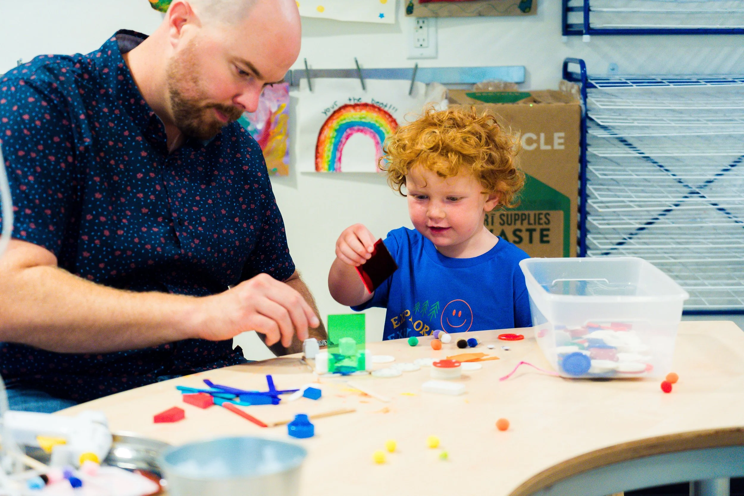 Art offers a hands-on way for children of all ages to express themselves. The Studio is a place where our visitors feel comfortable experimenting, making mistakes, and cultivating their creative individuality. We offer many different supplies, mediums, and available staff to explain and assist artists. By focusing on the process of making art rather than the final product, children build intrinsic motivation and boost their self esteem, and the engagement of multiple senses supports the development of important cognitive skills.